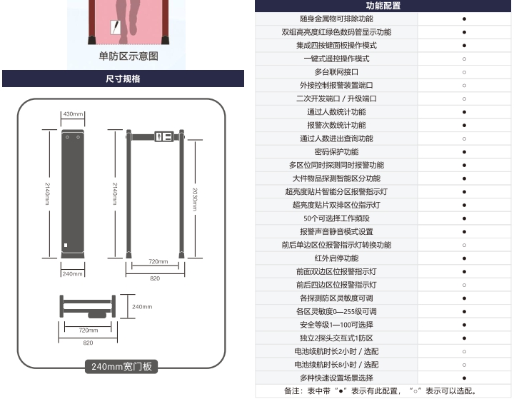 人體測溫安檢門一體機II型遠距離高精度人體測溫安檢門,集帶人體溫度檢測和金屬探測為一體的安全檢測門,門頭裝有高精度的體溫檢測探頭,探測角度可以上下移動, 能夠測量人體額頭的表面溫度,然后根據人體額頭的溫度與體溫的關系得到人體的實際體溫。檢測儀的光學組件將額頭發射和反射的能量匯集到傳感器上,通過電子組件將此信息轉化成溫度讀數并顯示在顯示面板上,當溫度讀數超過高溫報警值時,儀器會發出報警聲.報警溫度可隨意設置.具有防水、防火、防腐等特點。適用于管制刀具和槍支等危險品的安全檢查,廣泛應用于適用于機場,車站,出入境檢查站,等人員密集場所。是防止疫情擴散的有效手段。